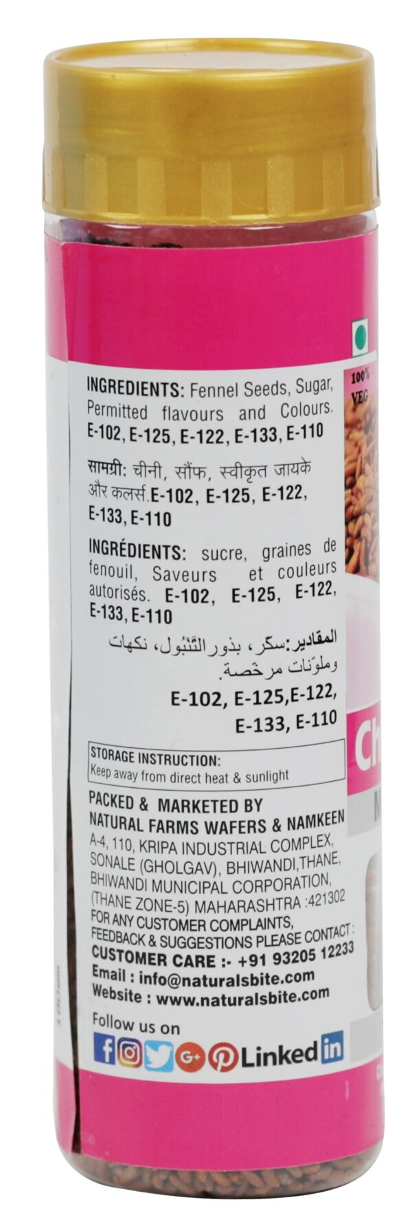Fennel Seeds, Sugar, Permitted Flavours and Colours E102, E125, E122, E133 E110