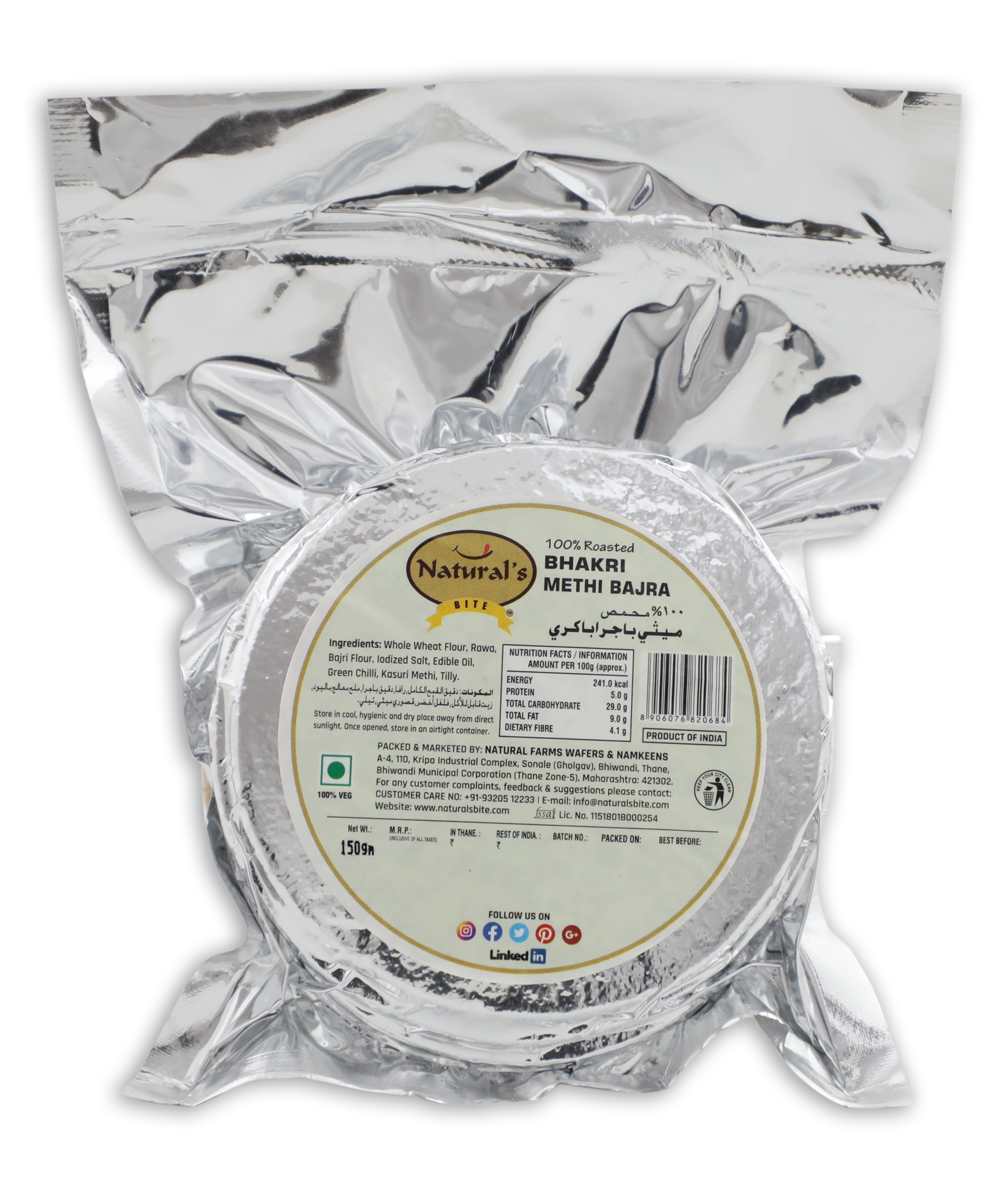 Naturals Bite Roasted Bhakri Methi Bajra 150 GMS